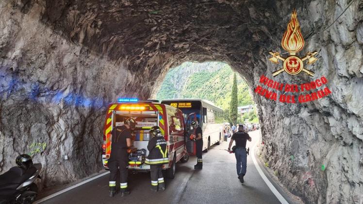 Gardesana in tilt: tir incastrato in galleria e incidente tra bus e auto
